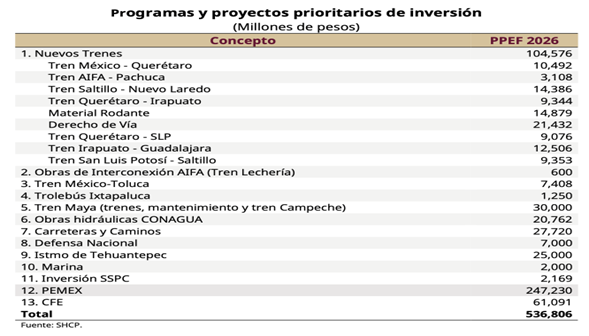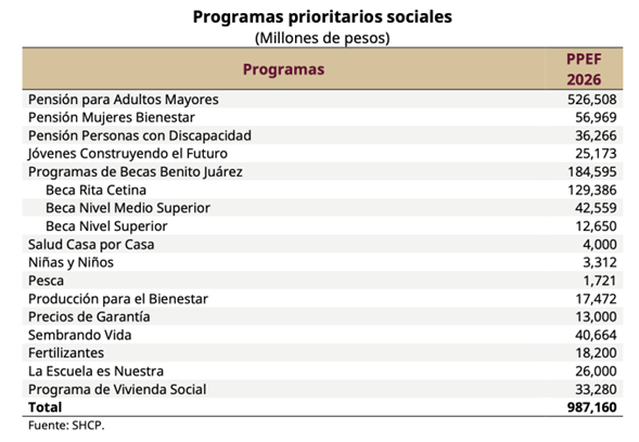 Teniendo claro lo anterior observemos el detalle de dichosprograma prioritarios del gobierno mexicano para el año 2026;